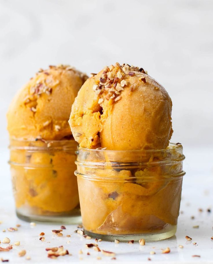 По истечении этого времени, мороженое необходимо достать, перемешать с помощью ложки и вернуть обратно в морозильник еще на 2 часа. После этого тыквенное мороженое готово к подаче и порадует своим необычным вкусом.