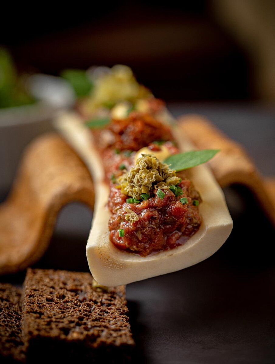 Тартар из говядины — это не просто мясо, а настоящая симфония вкуса. Гурманы отмечают, что этот деликатес подается в уникальной подаче — в мозговой косточке. Здесь каждый компонент играет свою роль: