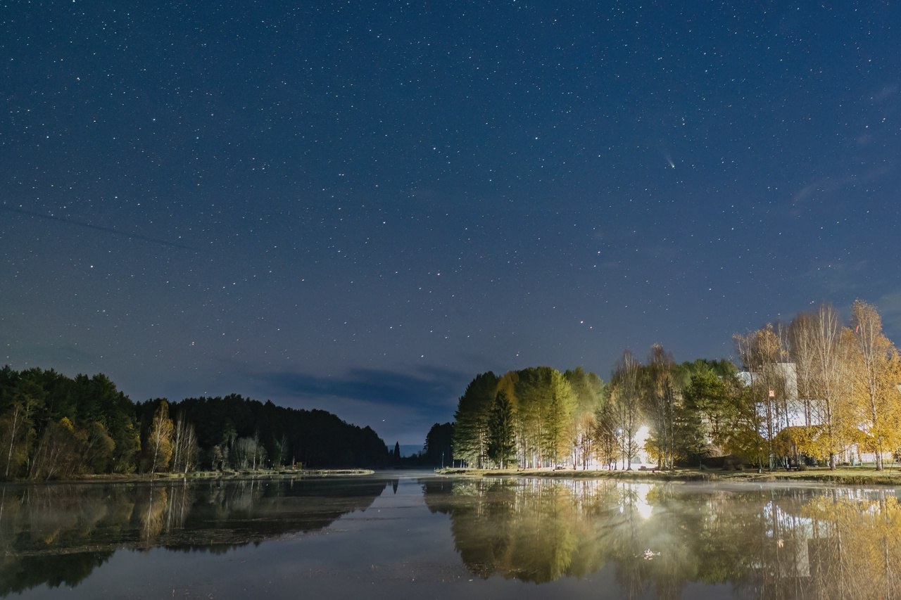 - Прошлой ночью на небе показались долгожданные звёзды, и даже замурованная в гипс нога не удержала меня дома, - рассказал кировский фотолюбитель Алексей Шилов. - Потихоньку добрался на костылях до пруда и поснимал набравшую яркость комету C/2025 A6 (Lemmon). Глазами её не смог разглядеть, но через фотоаппарат нашел сразу. При сложении серии снимков в хвосте даже можно различить структуру.