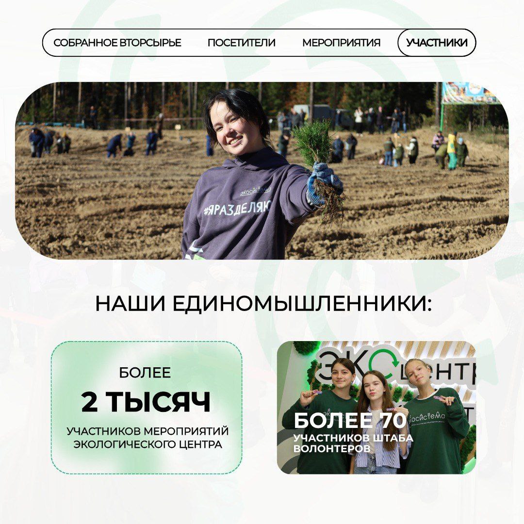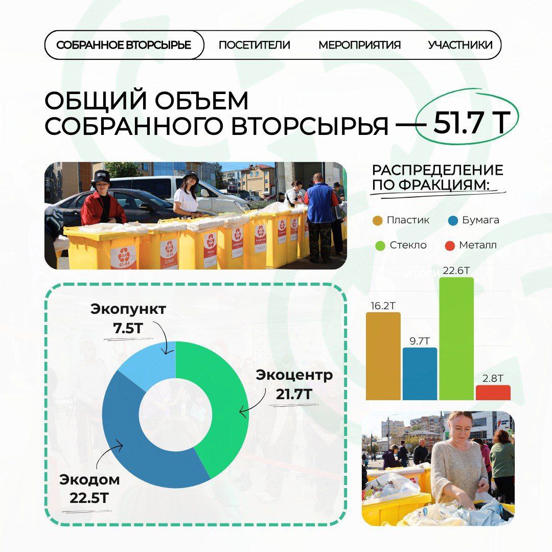 С января по сентябрь через Экоцентр, Экодом и Экопункт прошло свыше 26 тысяч человек. Было собрано более 51,7 тонны вторсырья, проведено 148 мероприятий, более 30 партнёрских встреч, десятки экоуроков, фестивалей и акций «Экомобиль» и «Экососеди».