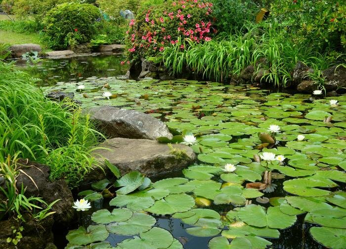 Создание живописного пруда нельзя представить без роскошных растений. Разноцветные кувшинки, водные гиацинты и пистии отлично дополнят картину. Чтобы сделать ваш водоем еще более привлекательным, добавьте декоративные элементы: камни, небольшой фонтан или оригинальный мостик. Подсветка придаст пруду особую магию в вечернее время, превращая его в загадочное и романтичное место для расслабления.