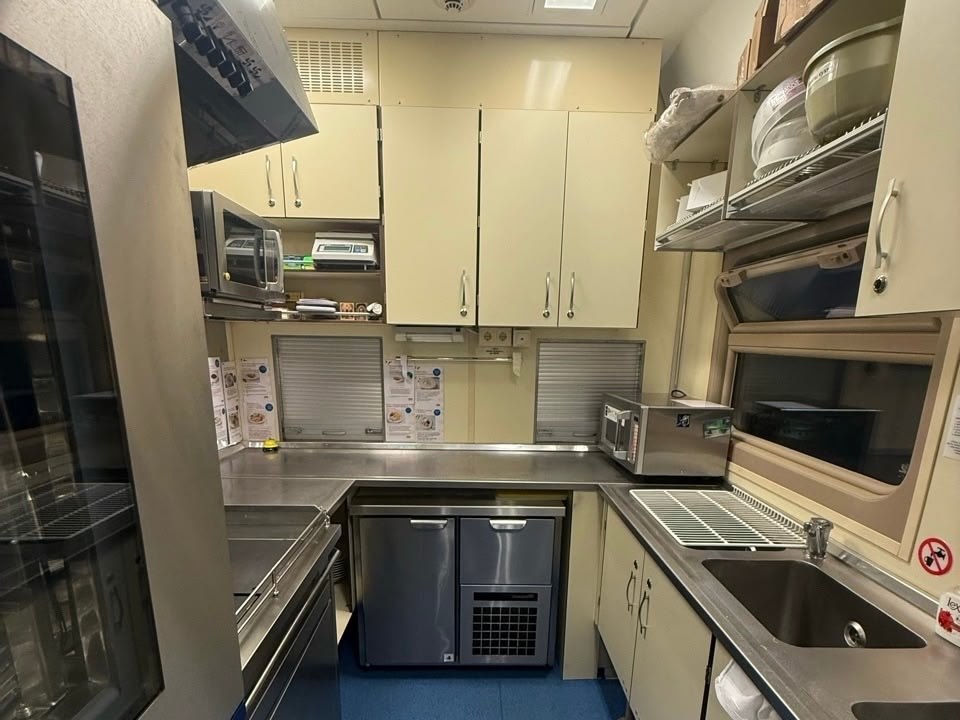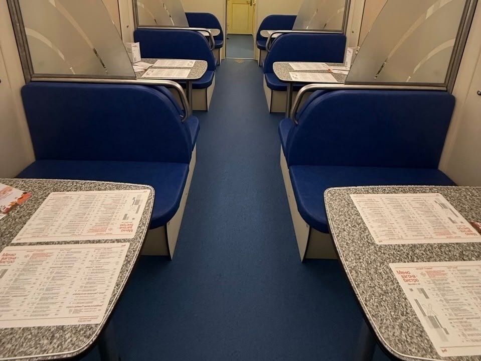 ГЖД сообщает, что недавно фирменный поезд пополнили новые вагоны-бистро. Они оборудованы индукционными плитами, пароконвектоматами, СВЧ-печами, посудомоечными машинами, универсальными холодильниками.