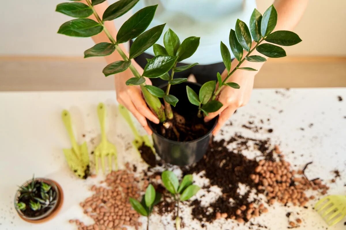 Одной из ключевых процедур, обеспечивающих здоровый рост замиокулькаса, является его пересадка. Прежде всего, нужно выбрать горшок, который будет немного больше предыдущего, чтобы растение могло комфортно развивать корневую систему. Также важно, чтобы в горшке были дренажные отверстия, которые предотвратят застой влаги наряду с возможным гниением корней.