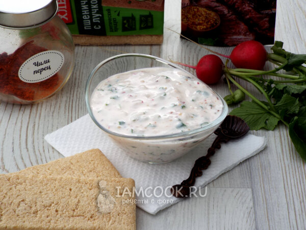 Этот соус представляет собой легко усваиваемую комбинацию свежести и легкости, благодаря своему основному ингредиенту — редису. На выбор можно использовать петрушку вместо кинзы, а йогурт заменить сметаной. Это делает рецепт более гибким и доступным для различных вкусовых предпочтений.