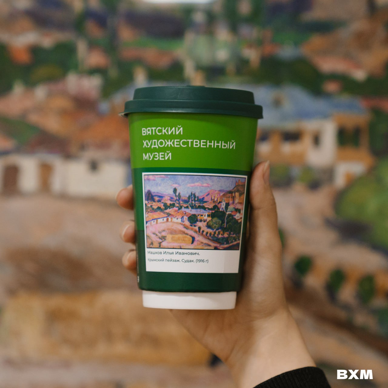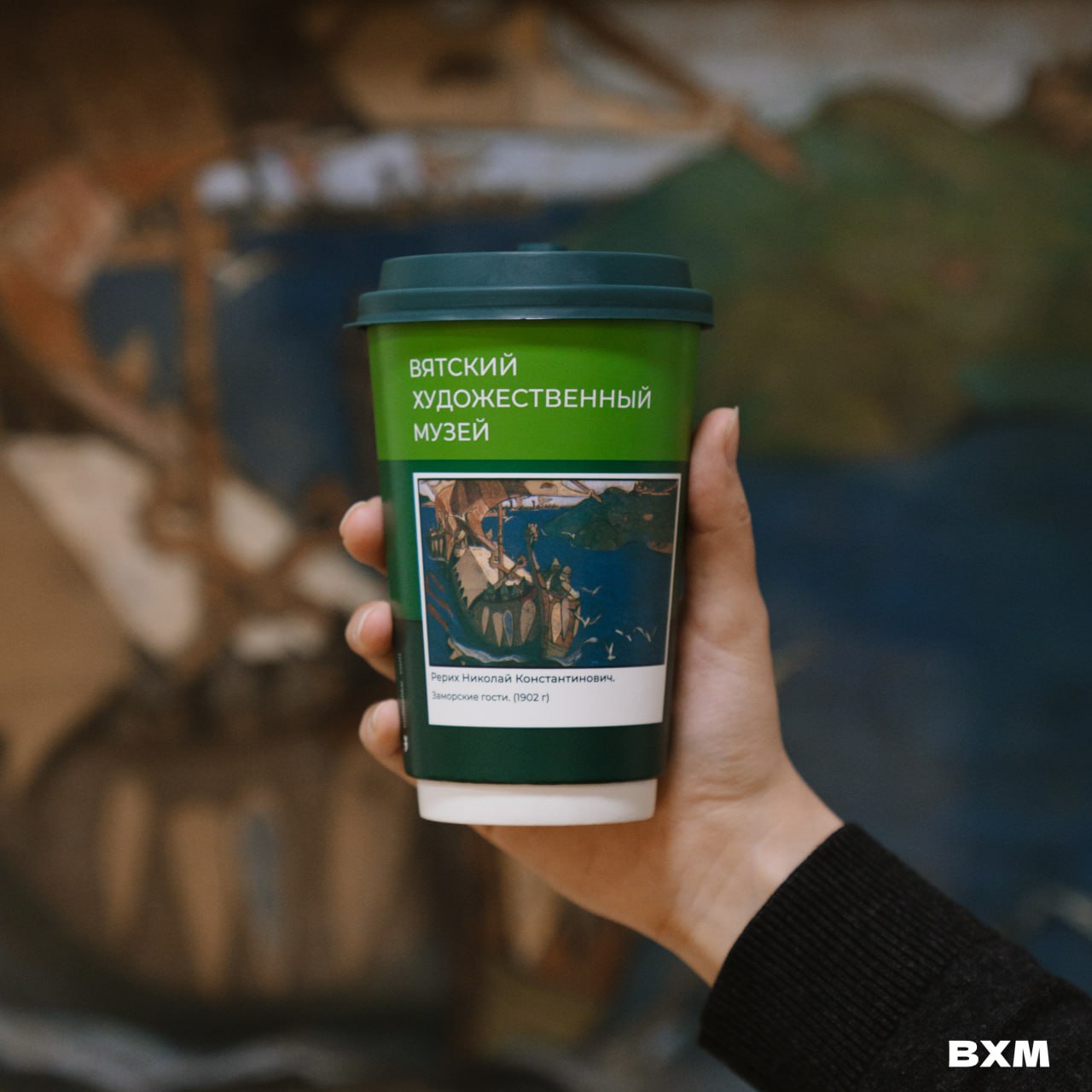 Вятский художественный музей и известная в Кирове сеть кофеен представили совместный проект к 115-летию музея. Теперь знаменитые картины из коллекции музея можно увидеть на стаканчиках для кофе.