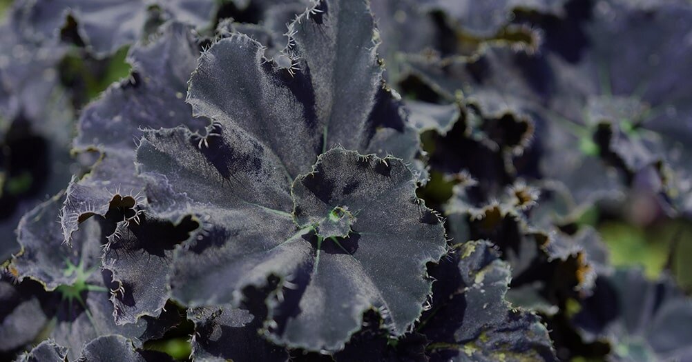 - Бегония Блэк Мамба - с глянцевыми темными листьями, создающими компактный рост. Предпочитает яркий, но рассеянный свет, требует высокой влажности.