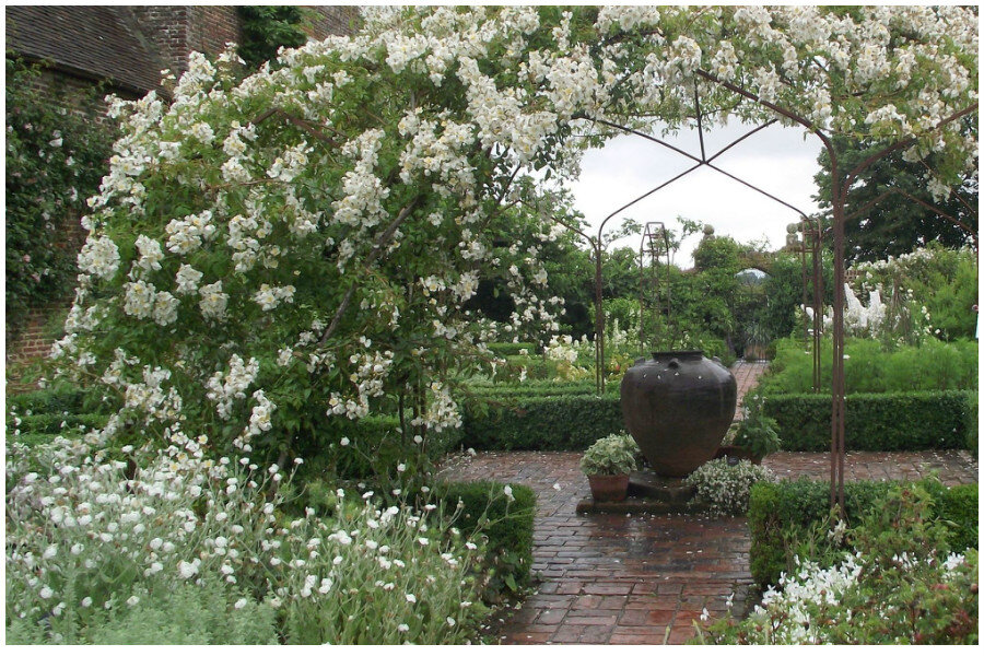 - Цветовая гамма: Основу должны составлять белые, кремовые и серые растения. Эти цвета создают особую атмосферу и подчеркивают красоту сада даже в вечернее время.