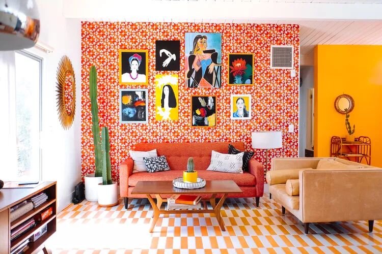 Одним из основных акцентов 70-х стали насыщенные оттенки и смелые паттерны. Наполняя пространство энергией и оптимизмом, такие элементы, как цветные обои и яркие текстильные решения, сохраняют свою актуальность. Чтобы создать гармоничное пространство, стоит смешивать различные узоры в одной цветовой палитре. Такой подход добавит динамики и свежести вашему интерьеру.
