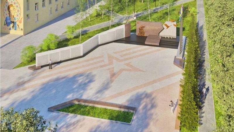 На эскизах видно, что в мемориальной части планируют установить стену памяти с именами погибших, скульптуру коленопреклоненного воина с летящими журавлями и Вечный огонь. Также предусмотрены флагштоки, освещение, скамейки и «Аллея Славы» с портретами Героев России.