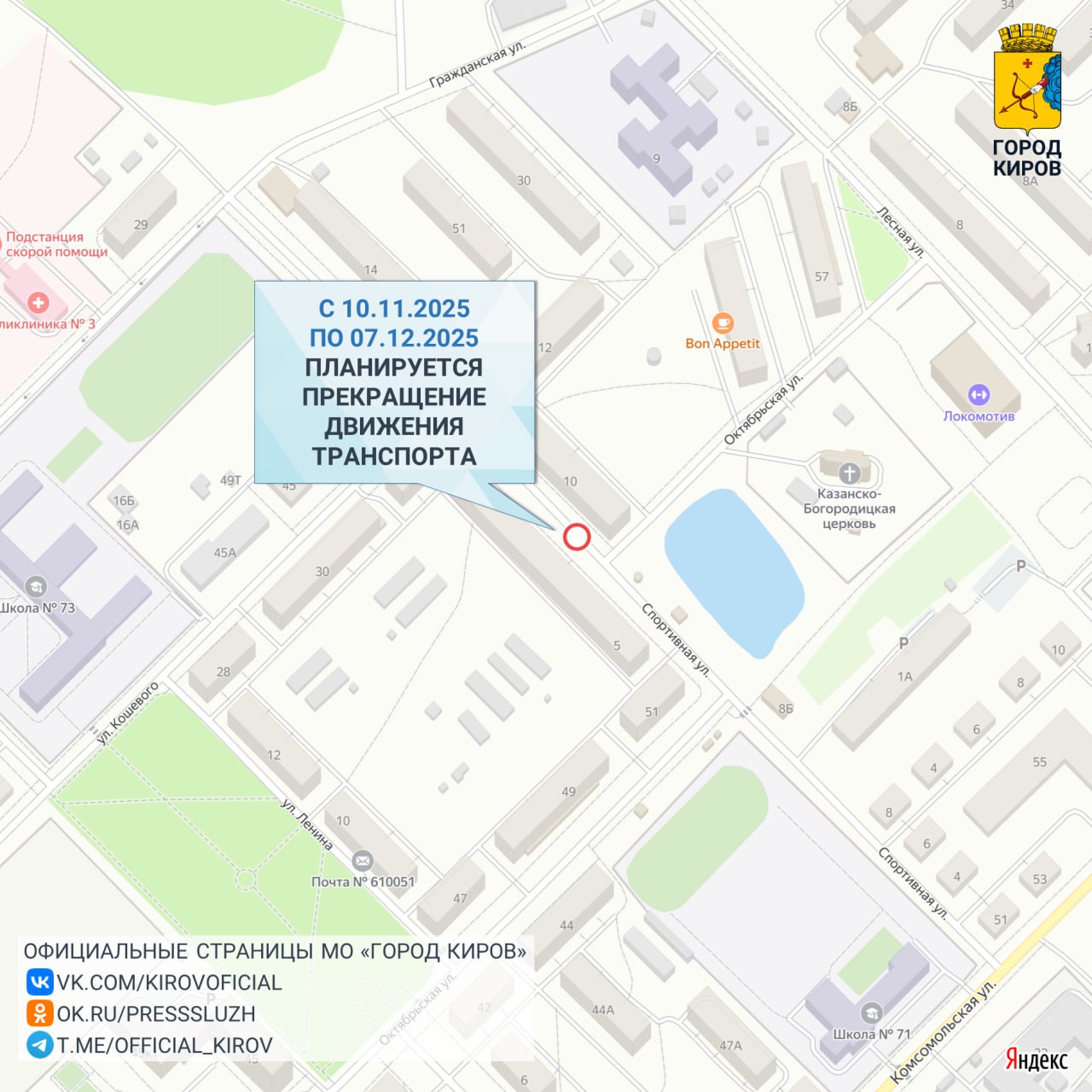 Проезд будет закрыт с 10 ноября до 7 декабря. Водителей просят учитывать данный факт и пользоваться альтернативными маршрутами движения.