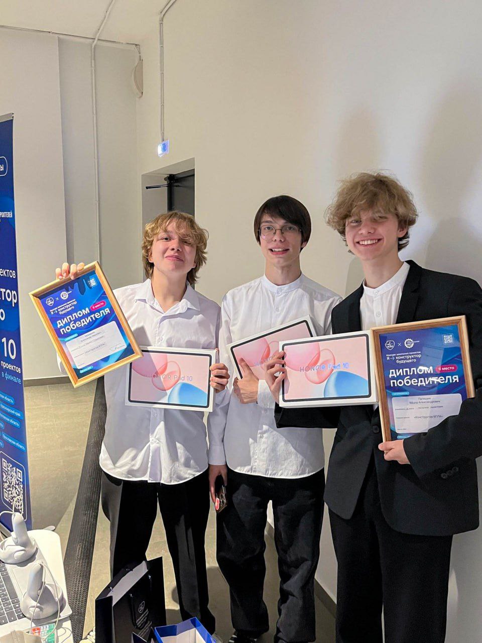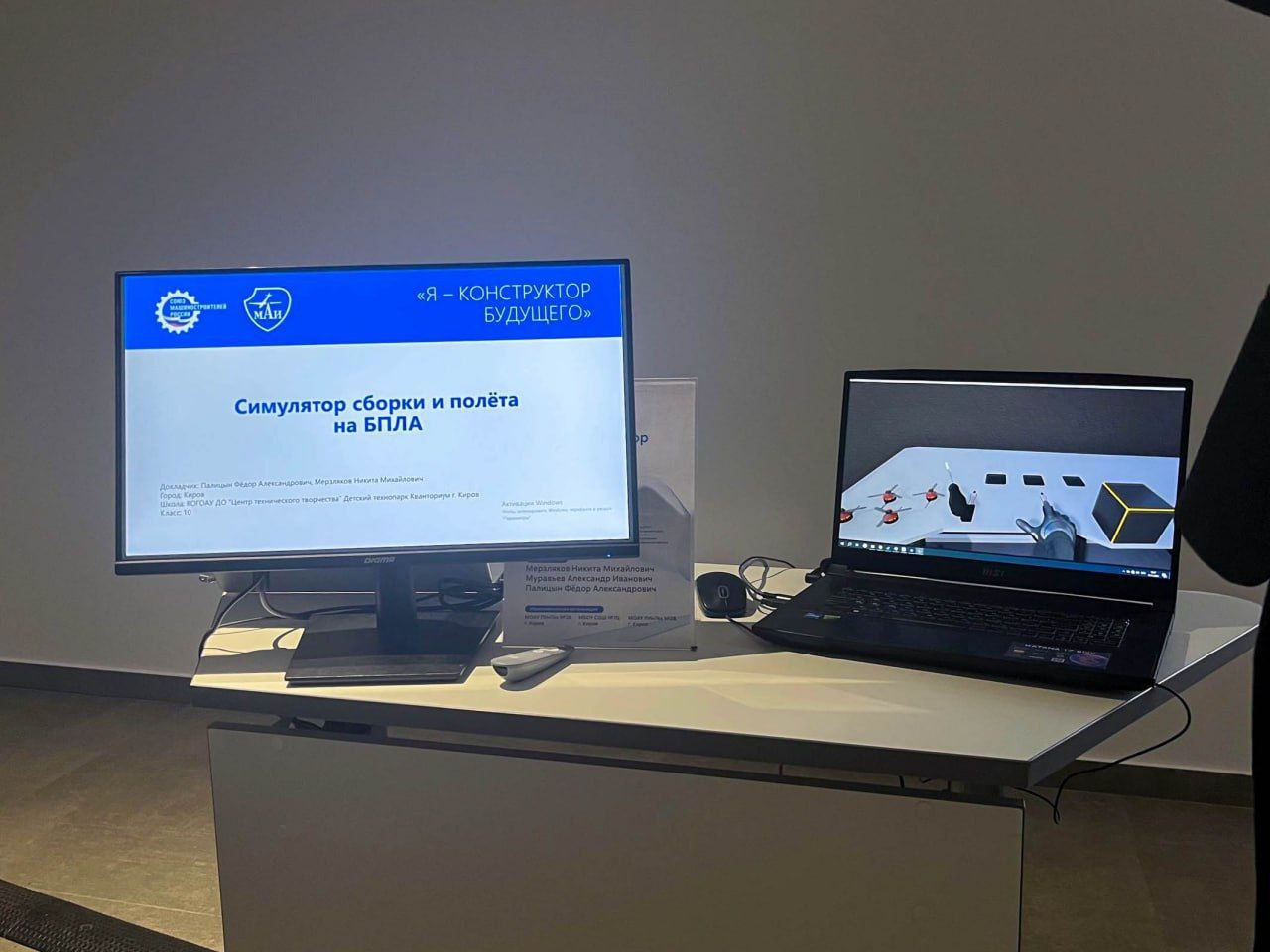 Фёдор Палицын, Никита Мерзляков и Александр Муравьёв под руководством наставника Натальи Холтобиной представили VR-тренажёр «Конструктор БПЛА» - симулятор сборки и управления квадрокоптером в виртуальной реальности. Разработка помогает в игровой форме освоить все этапы сборки дрона и научиться им управлять.