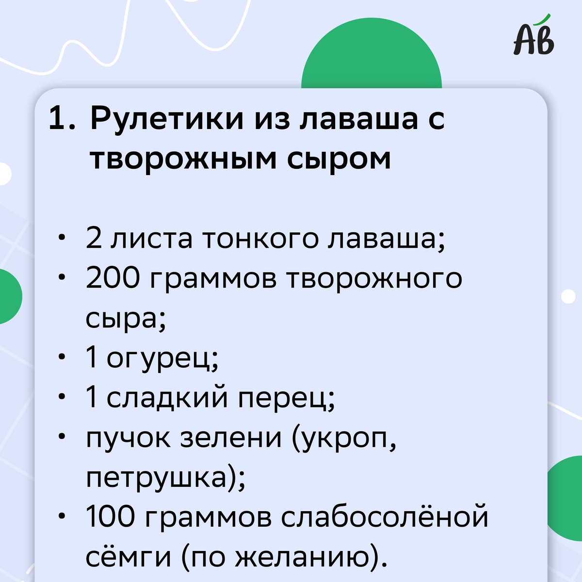 1. Рулетики из лаваша с творожным сыром и овощами