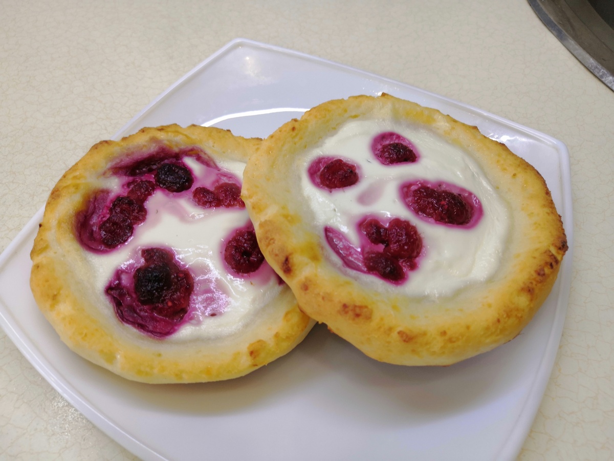 Из теста сформируйте небольшие основы для ватрушек, сделав бортики. В центр каждой основы положите подготовленный творог и ягоди. При желании, края ватрушек можно смазать яичным желтком для дополнительной золотистой корочки.