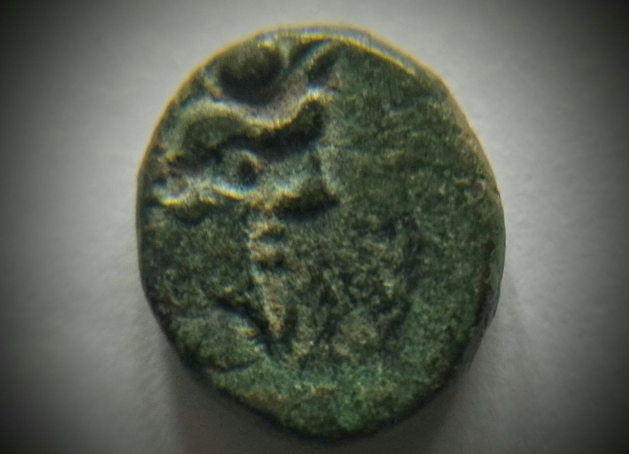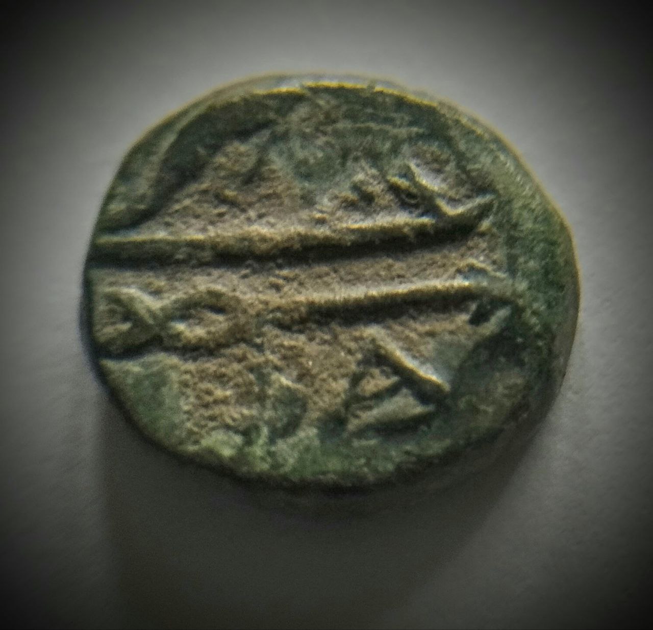 Если не знать предысторию ее происхождения можно было бы предположить, что монету отчеканили в древнем Хлынове. Ведь лук и стрела это символ Вятки. Но увы. Эта небольшая монетка была выбита в меди в г. Фанагория в 225 году до н. э. На монете изображён бородатый Пан - божество полей, лук и стрела, символ защиты и богатства (за счёт охоты). Под луком греческие буквы ФА - Фанагория. И дело в том , что греки как и первопроходцы Вятской земли, жили рука об руку с местным населением. Меоты, сарматы, скифы были не просто соседями греков, а входили в правящую верхушку городов. Скифы свои торговые связи простирали до лесо-степной зоны Евразии. В начале 2000-х в Котельниче была обнаружена монета этого же типа, но чеканена в столице Боспорского царства городе Пантикапей (г.Керчь). Как она попала в вятские леса всё ещё остаётся загадкой. Не может ли исследование античной нумизматики пролить свет на происхождение Вятского герба? Вот вопрос! Иногда в науке правильно поставленная проблема и есть путь к её решению...