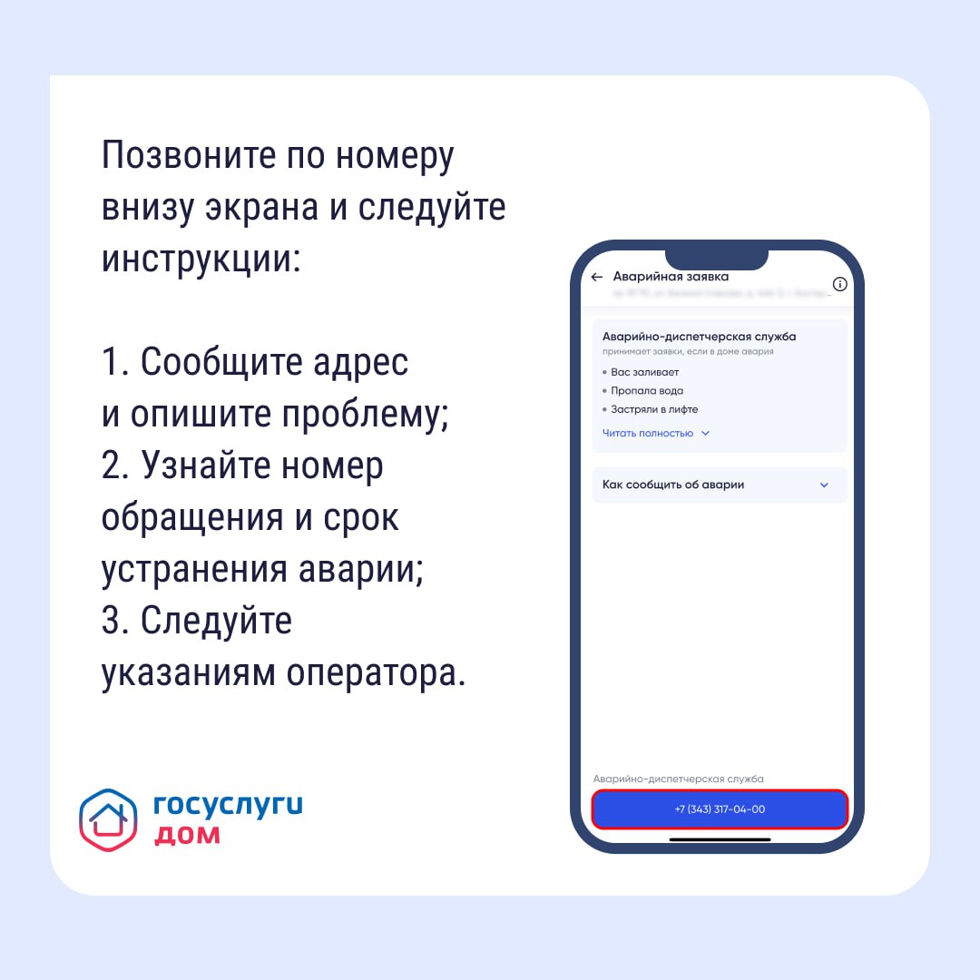 Прорвало трубу или пропал свет? Не тратьте время на поиск нужных номеров — связывайтесь с аварийно-диспетчерской службой в приложении «Госуслуги Дом».