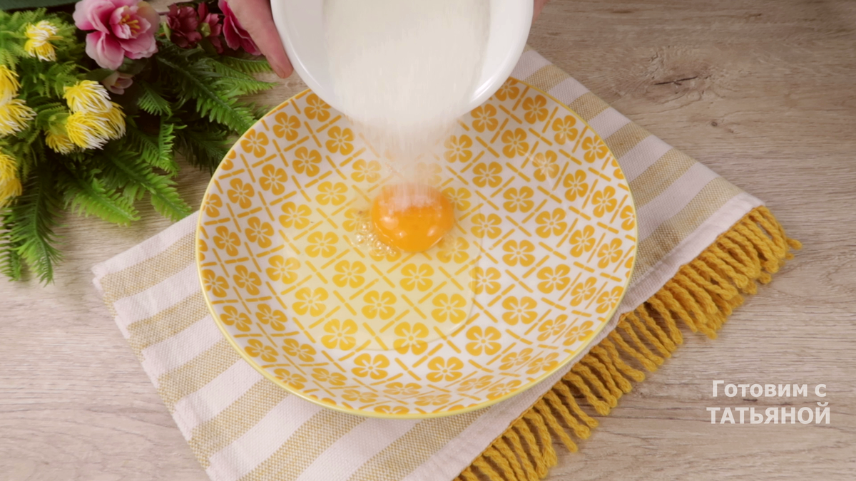 Всё начинается с подготовки теста. В глубокой миске смешиваются яйцо, сахар, соль и ванильный сахар, затем смесь взбивается венчиком до появления пены. В отдельной тарелке соединяются мука с разрыхлителем, к ним добавляется холодное нарезанное кусочками сливочное масло. Далее эти ингредиенты тщательно перемешиваются до тех пор, пока не образуется мелкая крошка. Создав небольшую ямку в центре, в тесто вливается яичная смесь, и всё это руками обрабатывается до получения однородной консистенции.