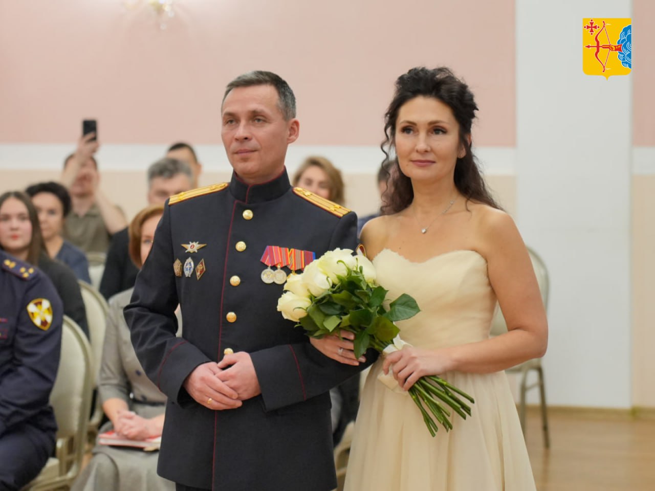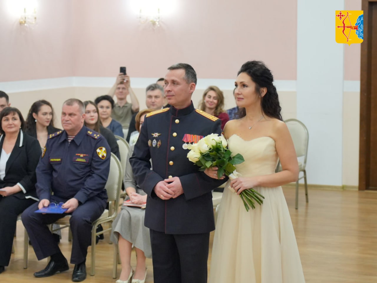 Супругов поздравила от имени губернатора Александра Соколова зампред правительства области Светлана Шумайлова. Она передала супругам поздравительный адрес от главы региона, подарки и пожелала паре счастливых и долгих лет супружеской жизни: