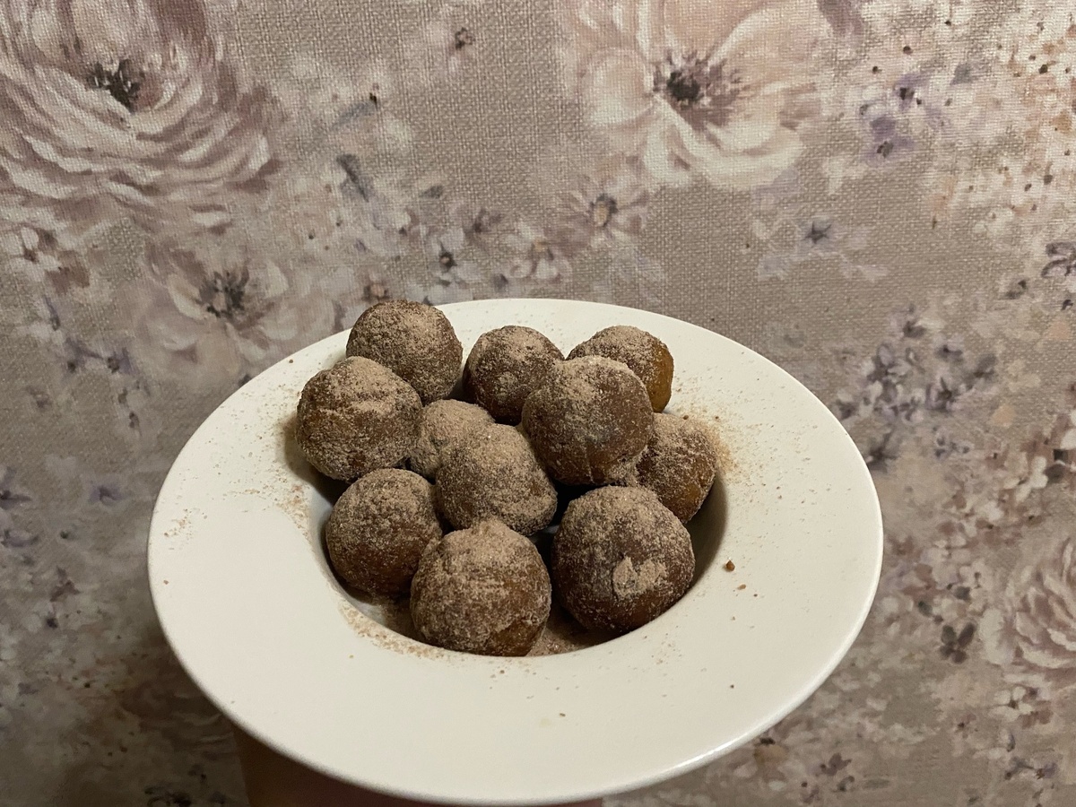Затем добавьте молоко и еще раз перемешайте смесь, чтобы она приобрела необходимую влажность. На этом этапе следует сформировать небольшие шарики из получившейся массы. Окончательно завершить подготовку можно, обваляв каждое пирожное в сахарной пудре и какао. И вот, лакомство готово!