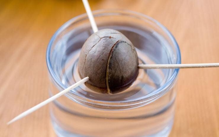 - С помощью зубочисток: Вставьте зубочистки в косточку и поместите ее в стакан с водой так, чтобы она не утонула.