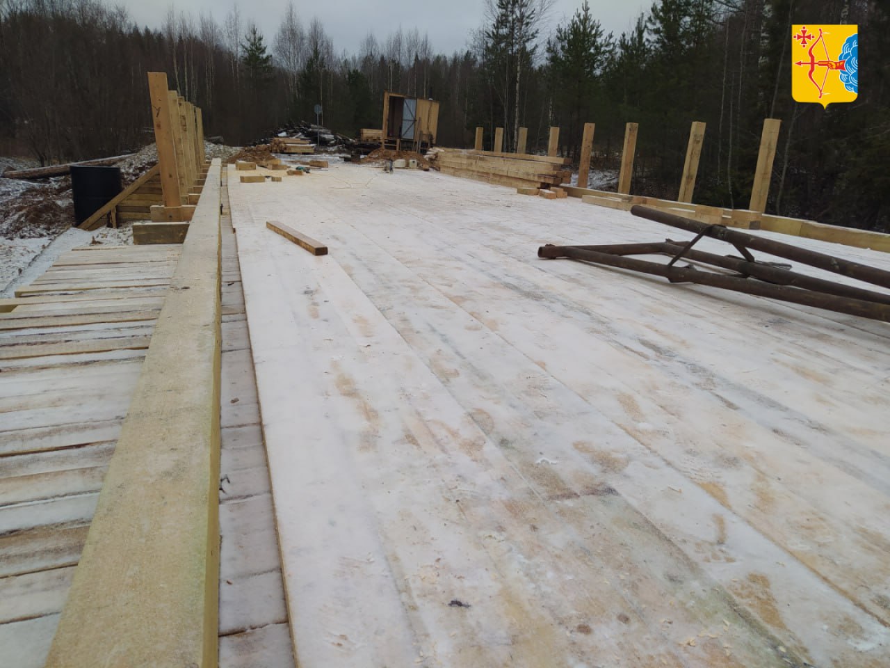 Общая протяжённость моста — 25,9 погонных метра. Работы начались в октябре 2025 года и на сегодня выполнены на 80%.