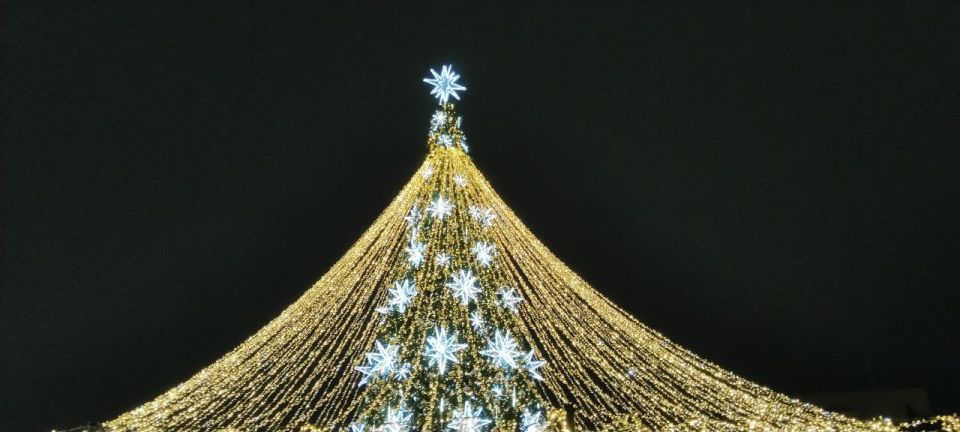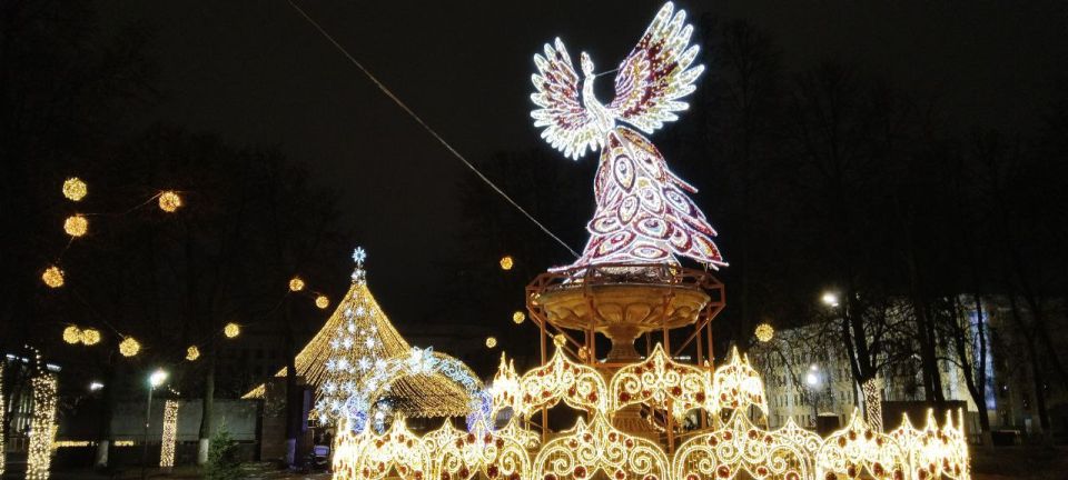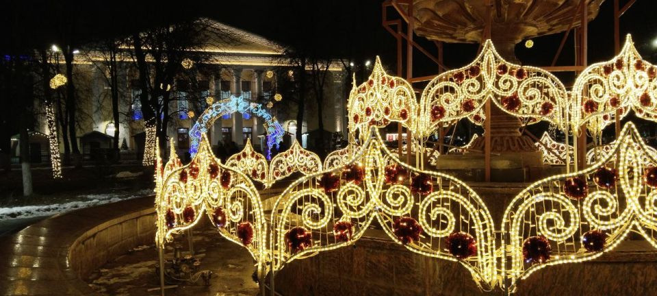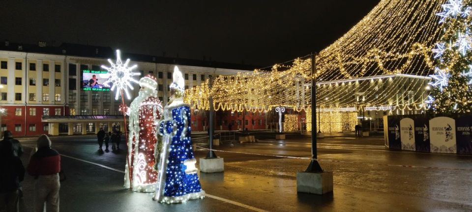 Праздник к нам приходит! Новогоднее оформление Театральной площади - уже радует глаз и поднимает настроение. Но как будто , чего-то всё-таки не хватает? Снега маловато! Ждём зимней погоды в декабре!