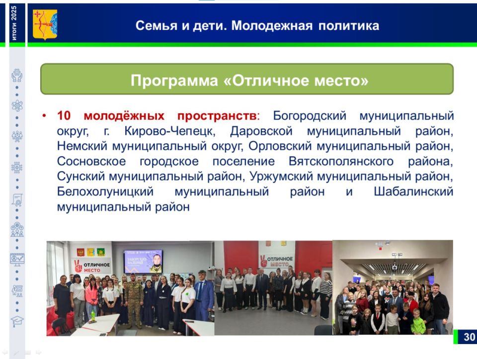 — В 2025 году продолжилась реализация проекта по развитию молодёжных пространств в муниципальных образованиях «Отличное место». Как и в предыдущие годы в создании проектов-заявок активно участвовала сама молодёжь. Молодые люди являются соавторами проектов, разрабатывают конкурсные заявки, защищают их, помогают с проведением ремонта, реализуют программу мероприятий.
