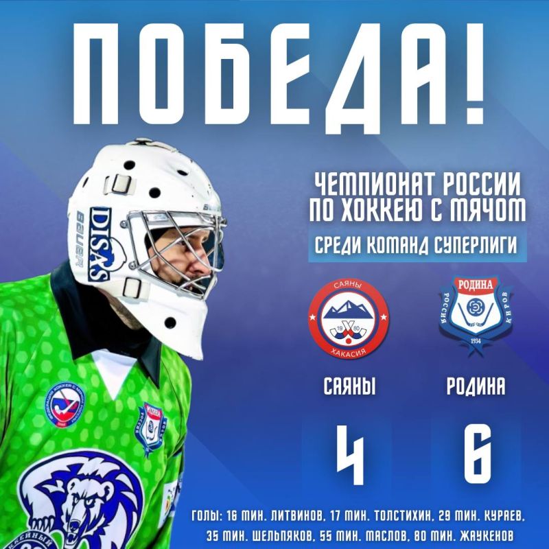 Кировская «Родина» одержала победу со счетом 6:4 в матче с хоккейным клубом «Саяны» (Абакан, Республика Хакасия)