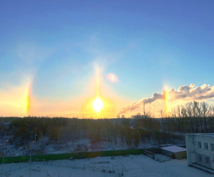 Фотографией поделился кировский гидрометцентр. Гало — это вторичное свечение вокруг источника света. Чаще всего гало появляется вокруг Солнца или Луны. Выглядит как светящееся кольцо вокруг основного источника света, но бывают и другие формы(дуги, столбы, кресты).
