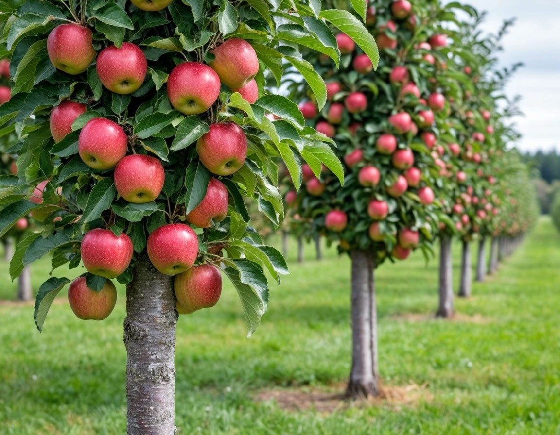 - Преимущества: Компактность — высота большинства сортов редко превышает 2–2,5 метра, а ширина кроны всего 30–50 см. Это делает их идеальными для малогабаритных участков. Они также начинают плодоносить гораздо раньше, чем традиционные яблони — часто уже на второй год после посадки.