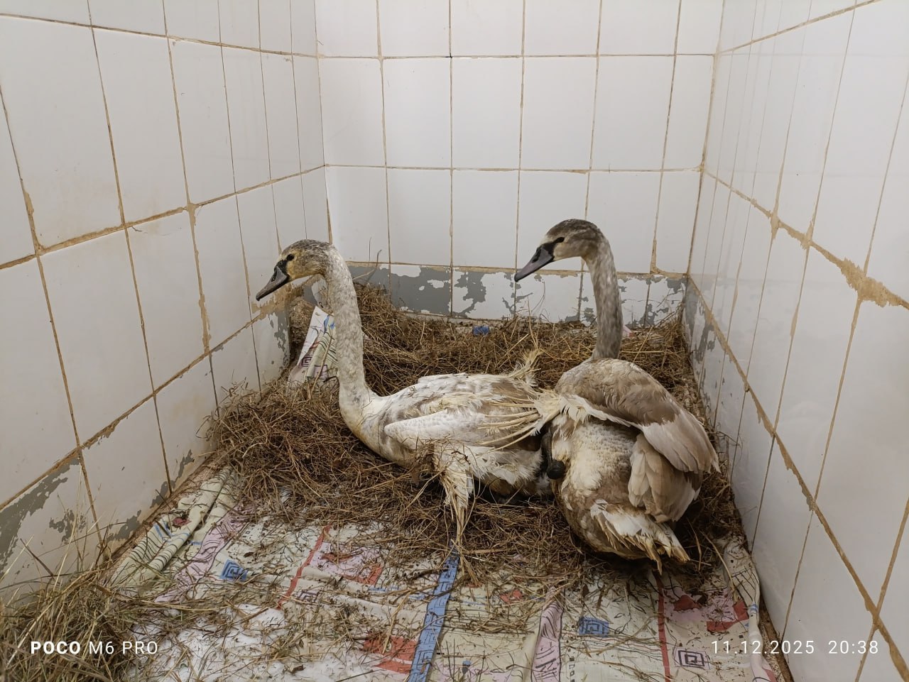 В их числе - 3 молодых птицы с патологией "ангельское крыло" и один взрослый лебедь с переломом крыла. Увы, все они уже не смогут летать и в природу не вернутся.