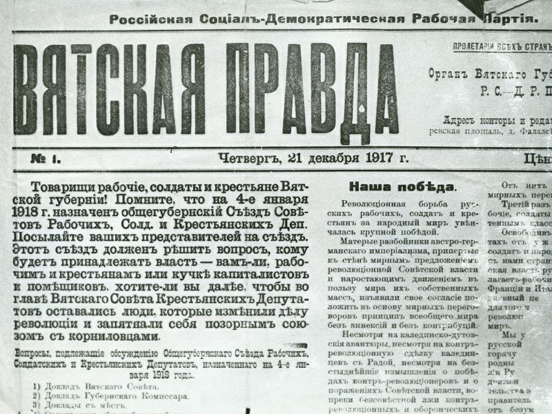 В 1917 году из печати вышел первый номер «Вятской правды. Это событие стало знаковым для региона, открыв новую страницу в истории местной журналистики.