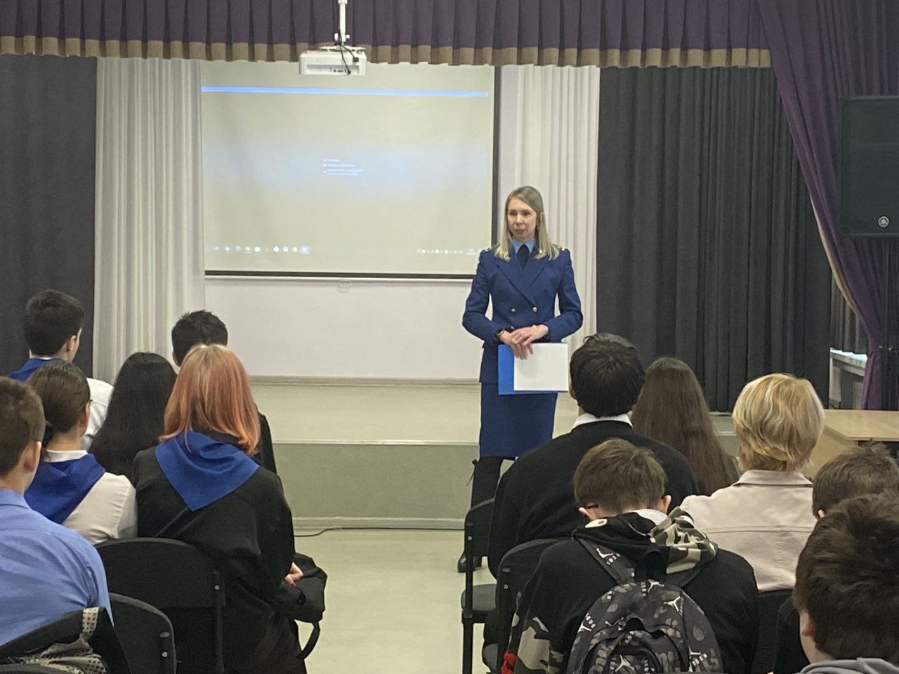 В рамках рабочего визита в Советский район начальник отдела по надзору за исполнением законов о несовершеннолетних прокуратуры Кировской области Анастасия Зонова посетила образовательные организации города Советска, провела беседы с учащимися.
