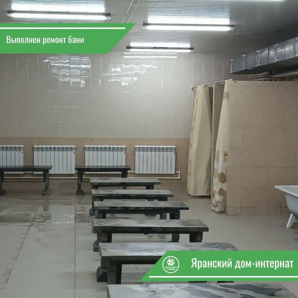 Например, в центре «На Казанской» обновили крыльцо и жилые комнаты для ветеранов, а также закупили новую мебель. В отделении временного пребывания детей и подростков поселка Заря провели ремонт помещений и крыши. Для маленьких подопечных отделения временного пребывания детей и подростков в Яранском комплексном центре отремонтировали душевую, а в Яранском доме-интернате — баню.