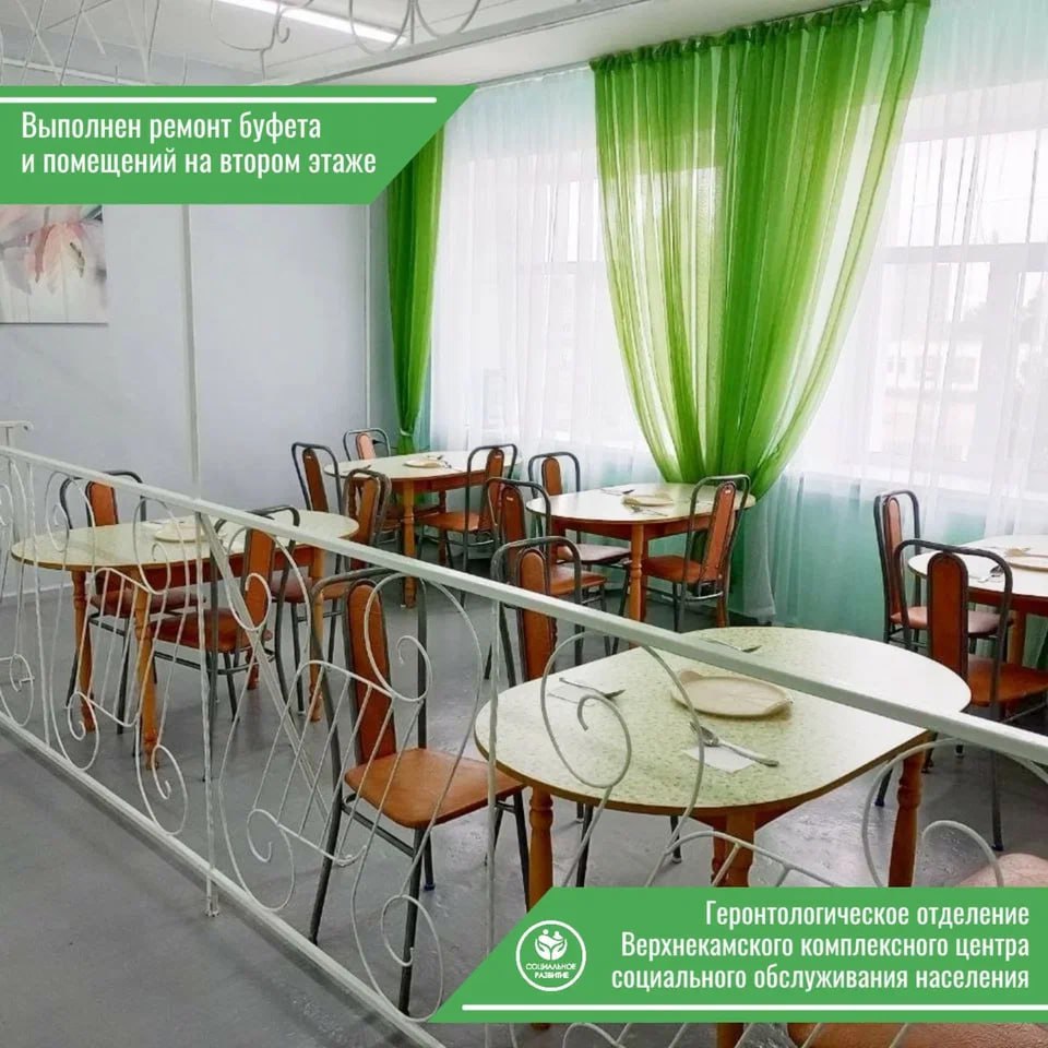 В геронтологическом отделении Верхнекамского комплексного центра отремонтировали помещения на втором этаже, а также буфет. Также проведен ремонт отделения милосердия Советского дома-интерната и одного из отделений Новомедянского.