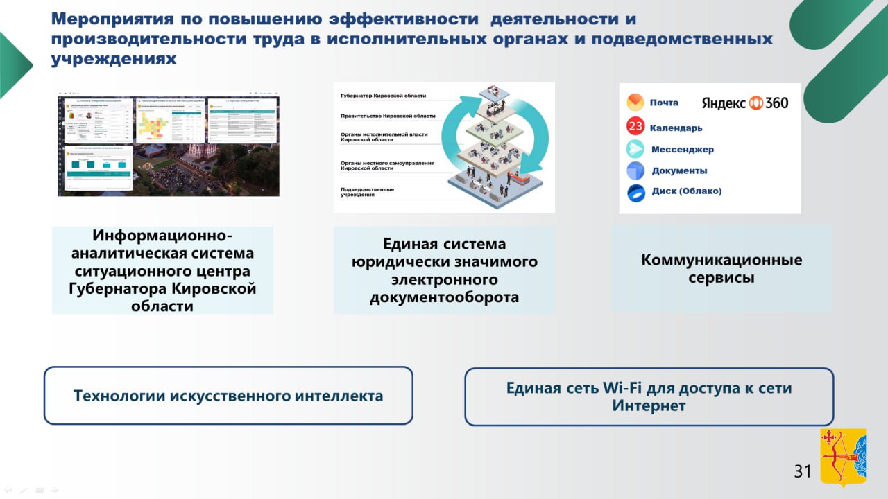 — Информационно-аналитическая система ситуационного центра Губернатора Кировской области содержит полные и актуальные данных по всем сферам деятельности Кировской области и является единой точкой входа и работы с данными для членов правительства, руководителей исполнительных органов и органов местного самоуправления.