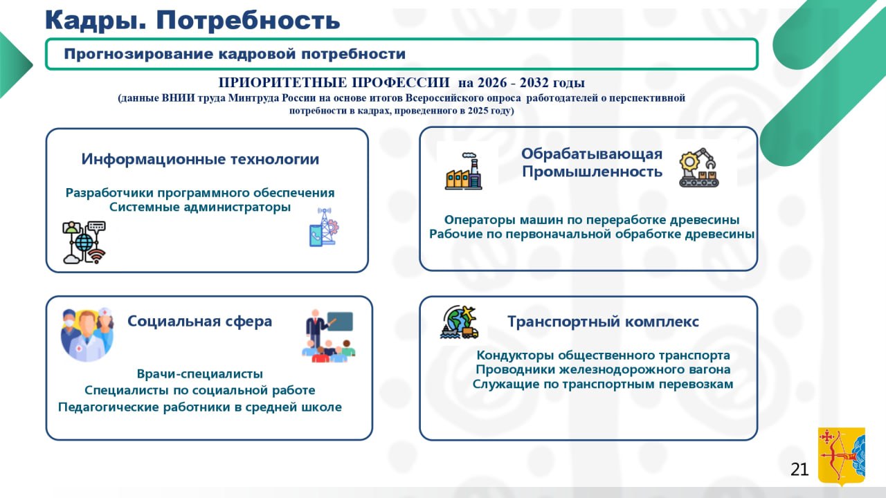 — В течение года плотно занимались вопросами обеспечения экономики региона кадрами. Проведена серьезная аналитика. Устойчивый спрос сохраняется в сфере информационных технологий, в обрабатывающей промышленности, в социальной сфере и в транспорте. Слышим запросы работодателей и увеличиваем прием в колледжах и техникумах по этим специальностям.