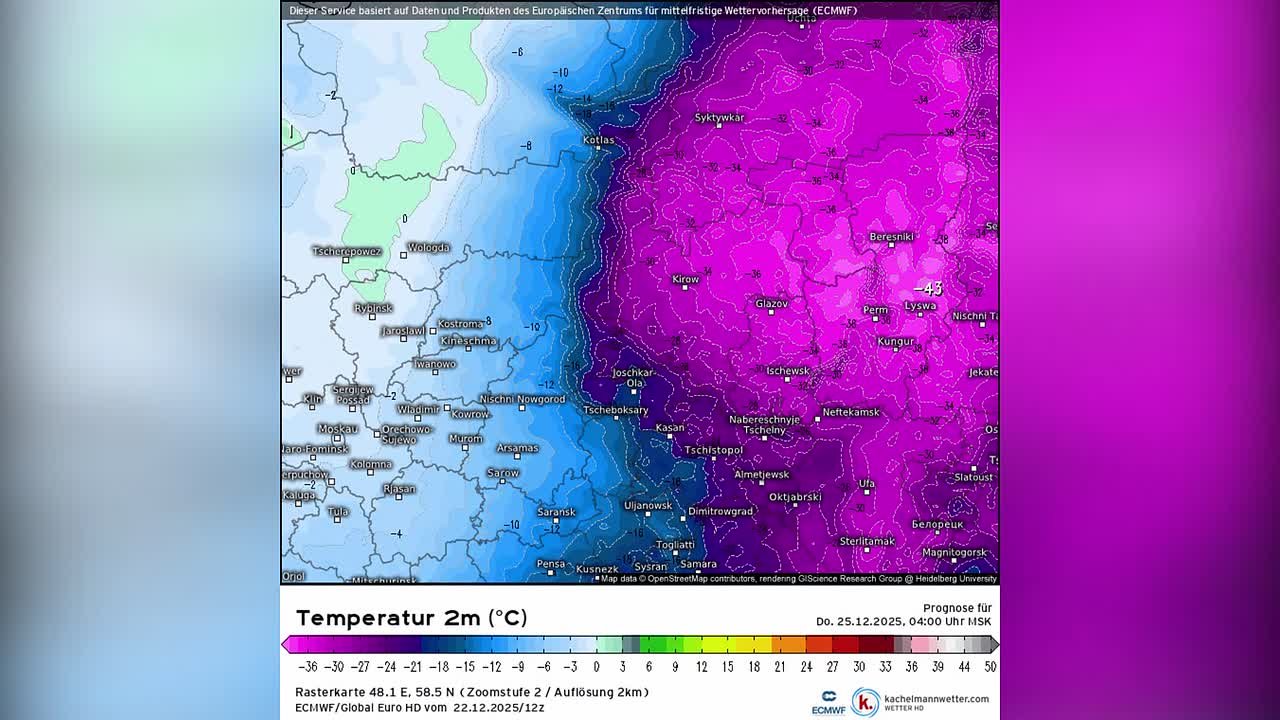 Согласно прогнозной модели, основная волна арктического холода в нашем регионе ожидается в ночь с 23 на 24 декабря. Местами температура воздуха понизится до -35 градусов.