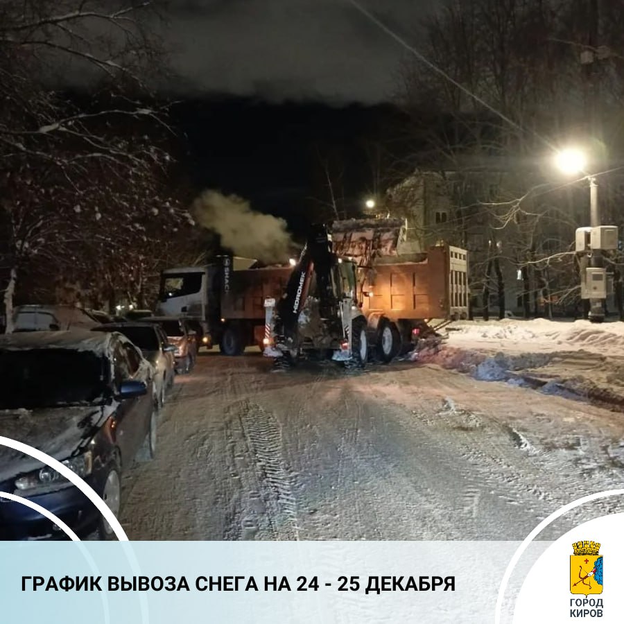 В Кирове продолжаются работы по вывозу снега. Информацию о том, на каких участках улиц в ближайшую ночь подрядчики задействуют спецтехнику, разместили в нашем канале МАХ.