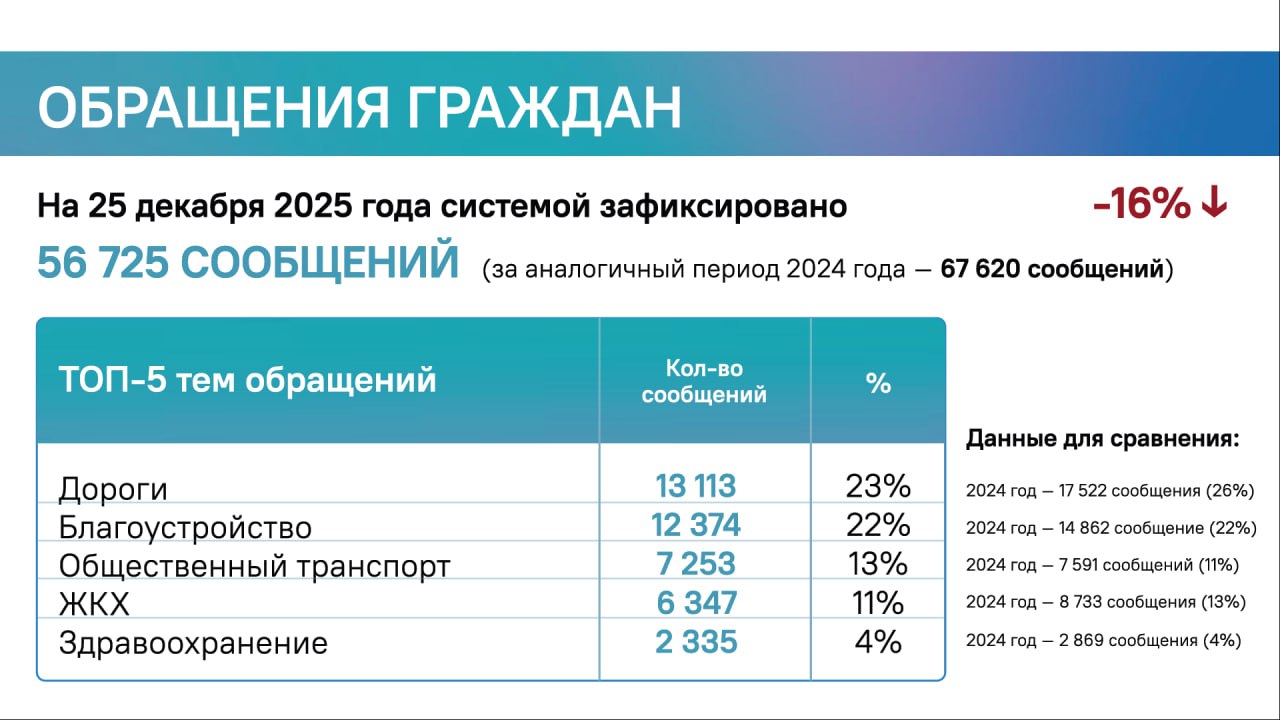 — В ходе проведения мониторинга с использованием системы «Инцидент Менеджмент», в 2025 году зафиксировано 56 725 сообщений (за аналогичный период 2024 года — 67 620 сообщений), что на 16 % меньше аналогичного периода прошлого года.