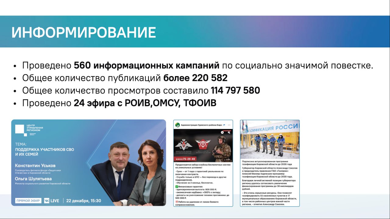 Нами было проведено 560 информационных кампаний. Общее количество публикаций — более 220 тысяч с общим количеством просмотров почти 115 млн.
