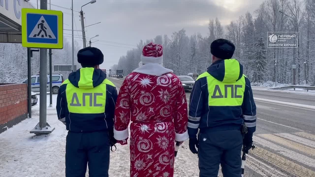 Сотрудники ГАИ взяли с собой на дорогу Деда Мороза. Волшебник сегодня помогал полицейским следить за порядком. Останавливали, в основном, водителей-дальнобойщиков. Дед Мороз угощал всех сладким чаем.