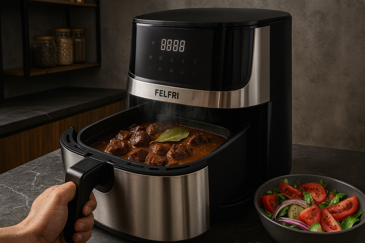Ищете способ быстро и вкусно приготовить ужин, не тратя время на мытьё множества кастрюль? Рецепт томлёной телятины в аэрогриле станет вашим спасением. Это блюдо сочетает в себе нежность мяса и густой насыщенный соус, и всё это без капли масла благодаря уникальному способу томления, пишет канал "FELFRI - бытовая техника для вашего дома".