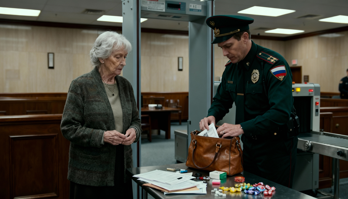 Сцена развернулась на входе в суд, где приставы тщательно осматривали вещи входящих. Бабушка, не имеющая злых намерений, была вынуждена выложить содержимое своей сумки на стол, где оказались лишь документы и мелочи. Ситуация приобрела комичный оборот, когда женщина, не сдерживаясь, задала вопрос о том, почему же стариков так мучают в нашем государстве.