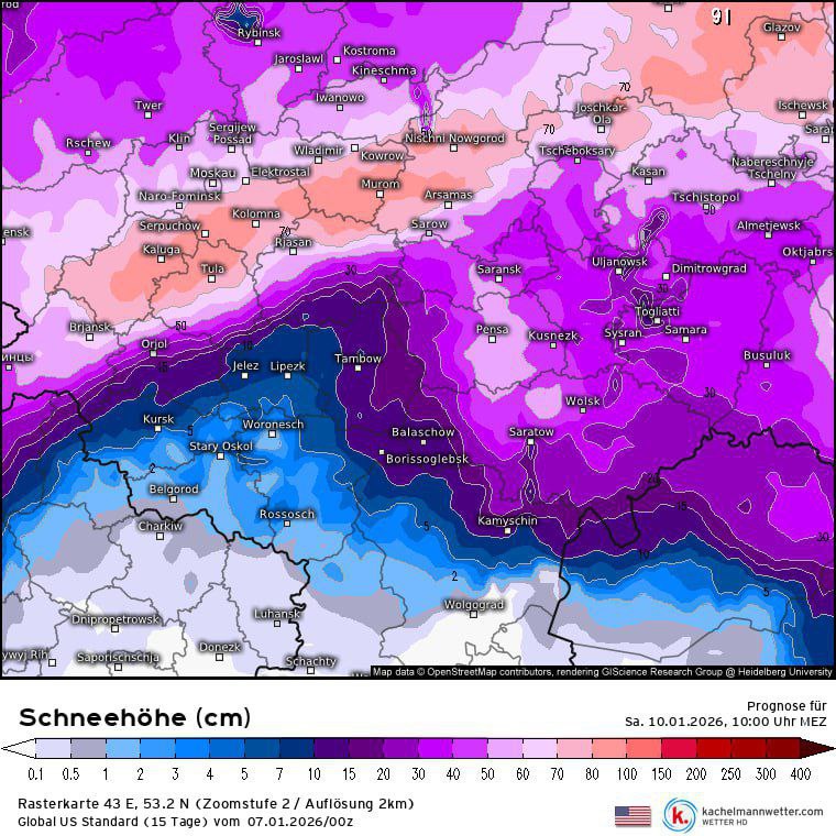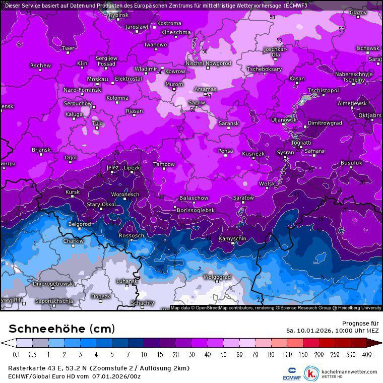 Разные прогнозные модели предупреждают о возможных обильных осадках в регионах ПФО 10-11 января, в том числе - на большей части Кировской области.
