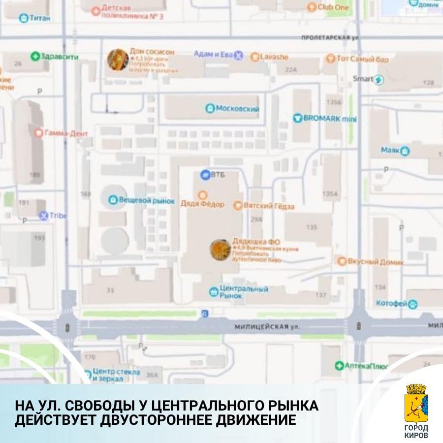 В дирекции благоустройства города Кирова напомнили водителям о том, что вступили в силу изменения схемы движения транспорта на перекрестке улиц Ленина и Пролетарской. Теперь нельзя выполнить поворот налево в обе стороны на ул. Пролетарскую. При этом для альтернативы на ул. Свободы от ул. Милицейской до ул. Пролетарской введено двустороннее движение транспорта.