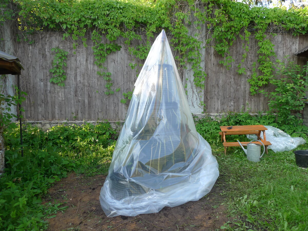 4. После этого сажайте огурцы и создавайте укрытие из плёнки, которое можно открыть для полива.