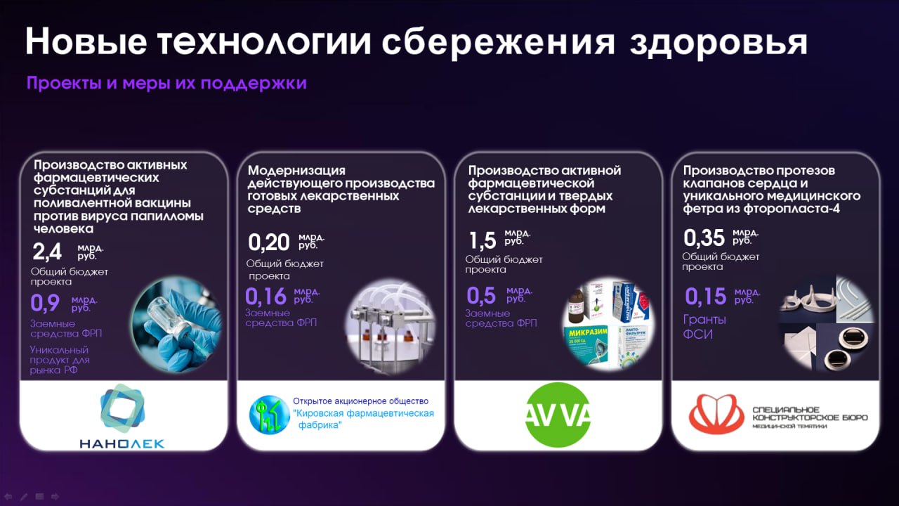 «Кировская фармацевтическая фабрика» — «Модернизация производства готовых лекарственных форм» — обеспечит стабильный выпуск вакцин и лекарств отечественного производства.
