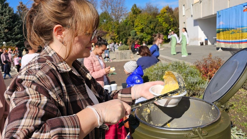 Благотворительный фестиваль «Тыква-фест» в станице Ессентукской собрал большое количество участников и гостей, которые наслаждались не только атмосферой праздника, но и вкусной тыквенной кашей. На мероприятии было подано более 300 килограммов этого традиционного блюда, а все средства от его продажи направлены на помощь военнослужащим, участвующим в специальной военной операции.