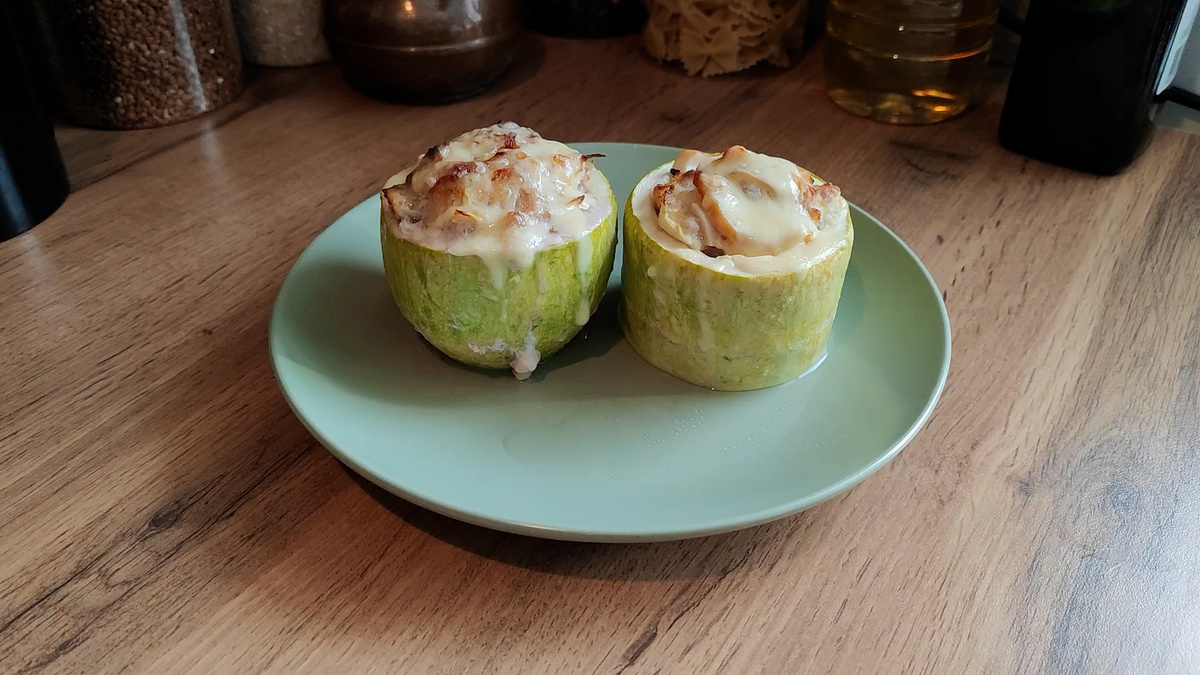 Фаршированные кабачки получаются невероятно сочными и ароматными. Кабачки впитывают сок от фарша, грибы добавляют легкую пикантность, а плавленый сыр завершает эту кулинарную симфонию.