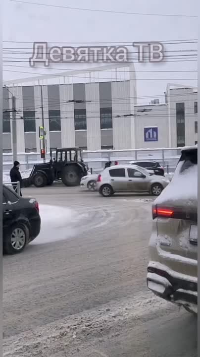 Авария с трактором на перекрёстке улиц Владимирской и Профсоюзной.